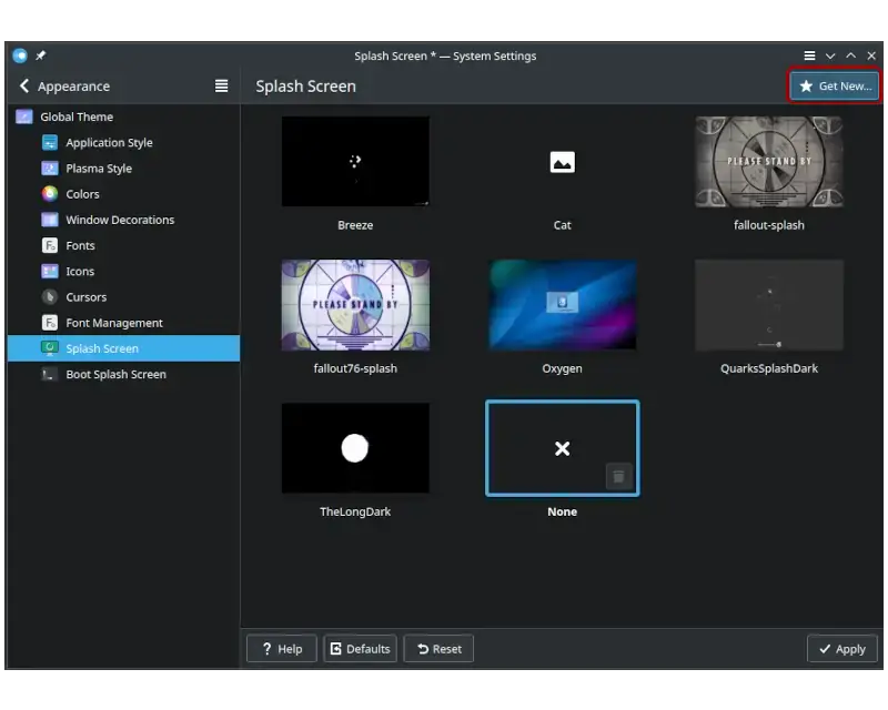 In the top right hand corner of the `Splash Screen - System Settings` window that you just opened click the ' Get New' button.